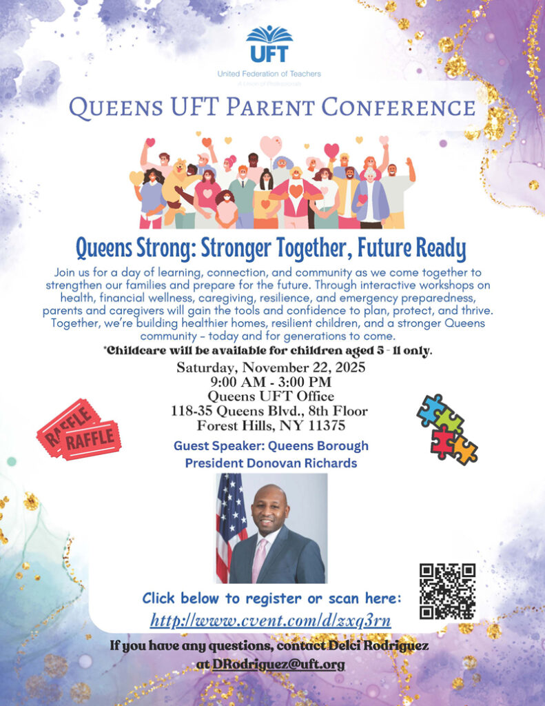 Queens UFT Parent Conference Join us and other CBO as we provide workshop on health and parenting at the UFT building DOWNLOAD FLYER